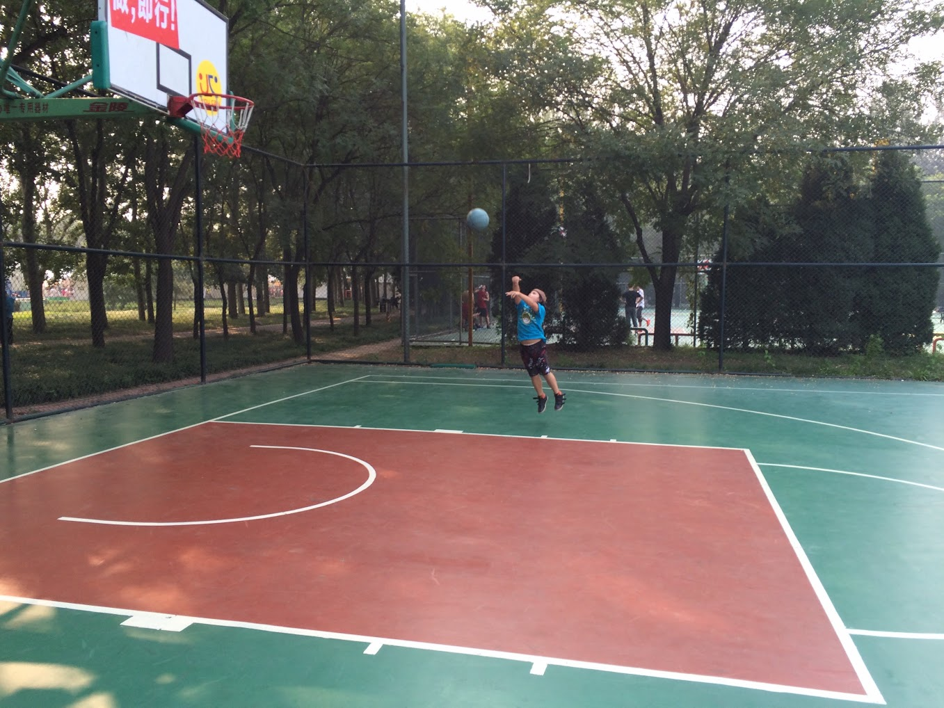 I relax as I know Aidan and Lydia can see I am mad and I know seemingly random anger from a parent isn’t great. I explain to Aidan what I was annoyed at (notice the shift from rage to anger to annoyance as the brain logictizes). I send Lydia off in search of water and cotton candy (with the 50 RMB note, by the way) and Aidan and I take our first shots. Aidan is not tall and being a bit chubby isn’t graceful looking but he moves with ease. His strength and coordination have improved a lot since we played last which was maybe in the spring time. He can easily shoot the ball from the free through line now and he has some spin moves he likes to add to layups. My body, on the other hand, feels like a fortress. My knees seem to have lost all strength and bounce. My legs are still strong so I can jump to get off my shot but it takes quite a bit of warming for my knees to let me. My back and neck resist movement and making some of my pet moves a thing of the past. I am feeling my age and it seems to all have come on in the past week.