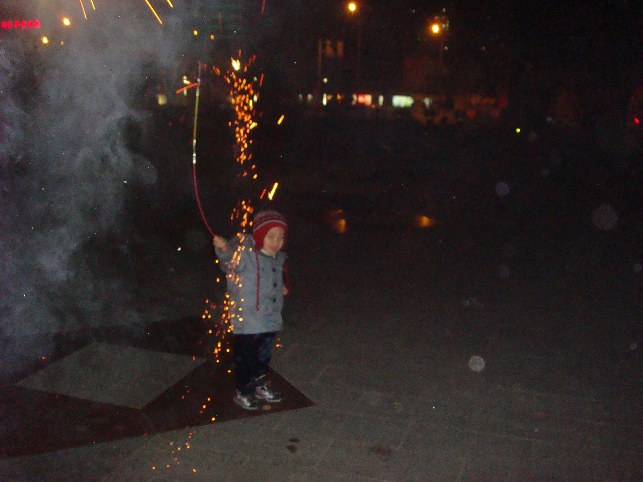 It is Chinese New Year eve and we arrive at the small public square across the street from our home. The square is dark and empty. While Aidan and Lydia wait with anticipation, Yang asks the security guard if it is ok for us to set off our fireworks here. “Keyi, keyi 可以 (sure, sure)” comes the response. We make our ways towards the center of the square and light our sparklers. Its cold and dry and a bit windy so the sparkrs take a bit to light. Once lit, Lydia is waving and dancing and Aidan is stabbing and jaunting. Another group of people joins us on the square and they light fireworks that shoot maybe five stories high and explode in light. We quickly run through our meager supply and dash to the fireworks stand to buy more. I want to buy a box of high flying exploding rockets but don’t want to lay down they cash (40 USD). We buy some more sparklers. In an unexpected occurrence of common sense, the fireworks stand does not have any matches.