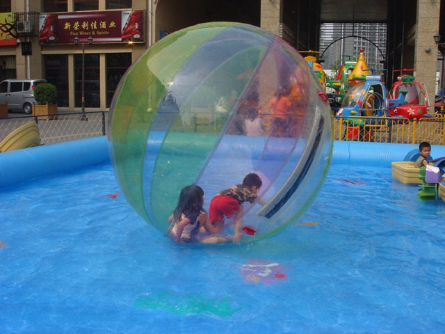 We started out the day at the water park, inside Tuanjiehu Park just on the other side of the 3rd ring road from the main business district of Beijing. While Aidan went on the slides, Lydia was happy to play with another little girl in the shallow water. Next stop, lunch at Annie’s, our favorite casual Italian fare. After lunch onto Fan Dazzle an indoor playground near our old apartment that is still one of their favorites. After a few hour there we headed home for a rest. For dinner we went to Wangjing, sat outside and ate light Chinese fare. Followed by more games, this one involving Aidan and Lydia sitting inside an inflatable clear plastic ball and rolling in water, not unlike this picture for a couple months back