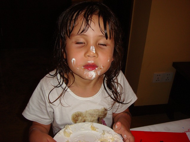 After dinner, the highlight of the day, Lydia could pick out any gift she wanted from the toy store upstairs, compliments of her American Grandparents. At least that’s what I told her, expecting her to stay inside the budget. But then Lydia went off the map, and asked for a floor tile. I am not kidding. A floor title, which happened to have her favorite cartoon character on it, but nevertheless a floor tile. A small tantrum later she was onto the barbies and we hit pay dirt. An authentic barbie that came with body stickers. She could not wait to open it but knew she couldn’t until her real birthday. When she did open it, she loved it.