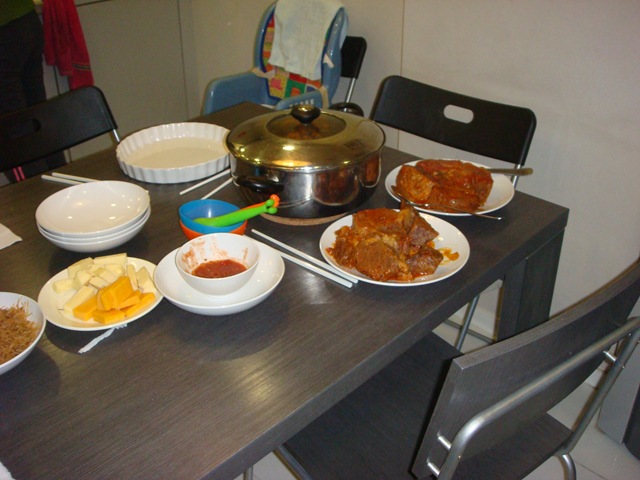 With that as background I take you to our Christmas dinner table. I had prepared my Mother’s recipe for pot roast and bow ties and I was about to take my second bit of the pasta. My mother in law, Yihang, then informs me that the bow ties taste much better with a little extra sauce beyond what I had made. Her choice? Soy sauce? No (but our ayi did secretly added some soy sauce to the pasta sauce while it was cooking). No, not soy sauce but rather the sour cream and onion dip mix. I can’t make this stuff up.