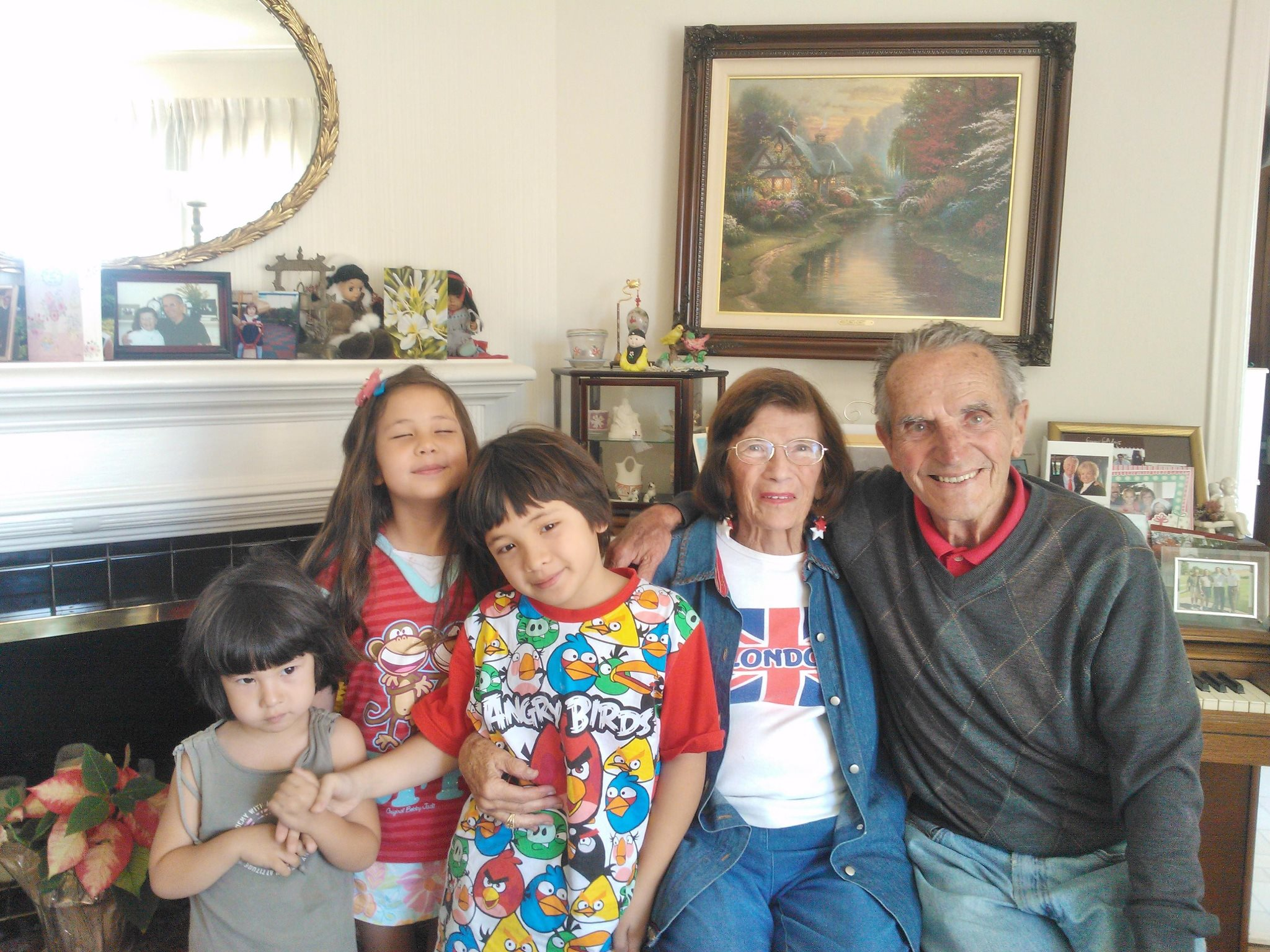 The Saturday birthday party came and went. The Sunday lunch came and went. The Monday small birthday party for Lydia and Elisa came and went. Then it was the Tuesday morning stop by on the way to the airport. Not sure when my kids will see my parents again. Aidan and Lydia knew the deal and took the pictures. Elisa would not stand next to my dad or my mom. Reluctantly she stood to the far edge of the photo next to Aidan. She was pleased to go onto the deck and play with Aidan while the adults talked in the living room.