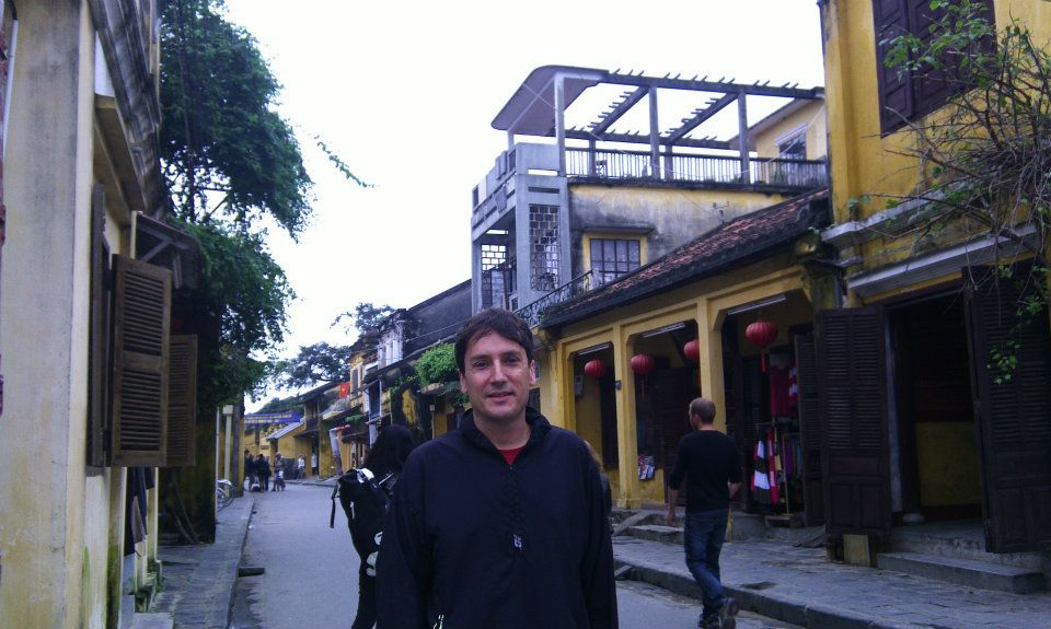 This was lunch of our first full day in Vietnam in a town called Hoi An about an hour drive from our five star beach hotel in Da Nang. We rented mopeds for the day ($5) and had found our way to the beach. The weather was not sun bathing ready…high 60ish…and there were few people to be found on the beach. We then headed back into town and was killing a little bit of town on our mopeds waiting for the hotel shuttle to return. Yang then zipped down a small street that was actually a pedestrian street in Hoi An old town. Yells of “no no no” got her to stop. The old town was quite charming, going back to the 17th century, and maintained in the same style. We decided to skip our hotel shuttle back and to had dinner in Hoi An.