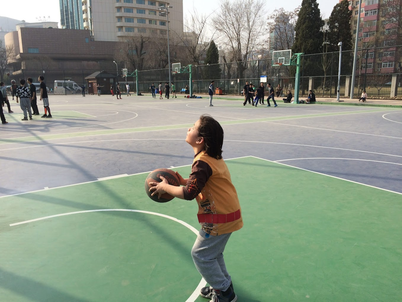 We got home after a beautiful morning walk around houhai. Aidan was still in the dumps. I made him some spaghetti for lunch (read: warmed up itailian takeout from two nights ago) and he relaxed a little. We walked to the basketball courts by workers gymnasium and played for an hour. Two games of 21. We both one one game.
