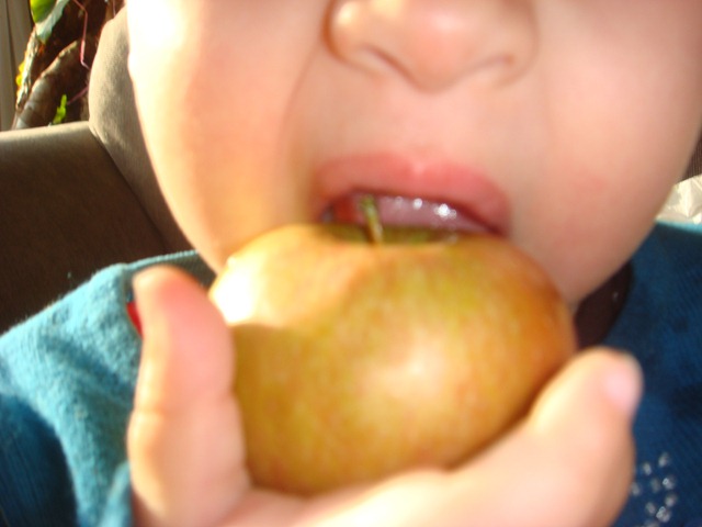 She became a fan of the extreme close-up, even self portraits. Here Elisa eating an apple along with a self portrait.
