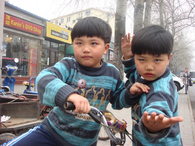 Yesterday when we stopped by buy some fruit for Yang’s grandmother we ran into twins who are Lydia’s kindergarten classmates. Turns out the classmates parents had just opened a nearby Peking duck restaurant. Lydia took the chance to get pics of the boys.