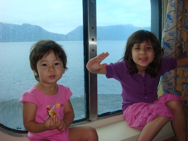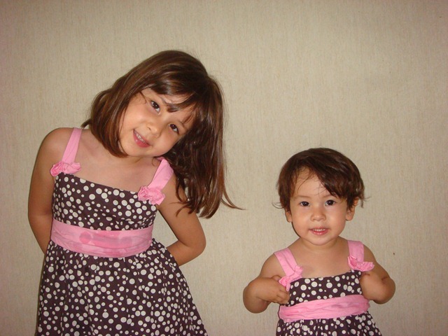 I head downstairs after my morning workout and Lydia and Elisa are in the playground. Elisa is coming down the slide and Lydia is going way high on the swing. Lydia beams at me on her way up and says “babi, babi”. Elisa reaches the bottom of her slide, stands up and runs to me also saying “babi, babi.” I am quite happy at this moment. I greet then, tell them I am off to work, then hop on my bike and confidently push off for the 15 minute ride to the subway station. A half block away, I realize my tires are too low on air to make it, so I circle back home and pump them up. Upon my second exit, the girls still wave but seem as interested in their play than saying goodbye a second time. I am left with an impression of my two girls being very close, kind of like in this two pictures: