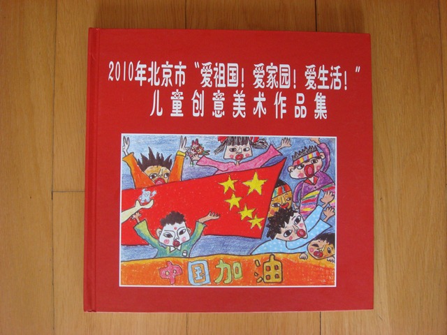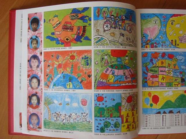 My path home from work takes longer and I don’t end up getting home until 8pm. Lydia has been having a tough day and is in her room moping. I walk in and and ask her what’s wrong – something that almost never helps discover what’s wrong – and she says nothing. So I talk to her about a drawing in my office at work. A drawing that when I look at it, just makes me happy. I tell her that she drew that picture. This puts her into a better mood and she goes and fetches a book of chinese school kids drawings. She flips through it looking. And then she points at a picture and says this one she drew. And then points at a picture of herself in the book. We then flip through the book looking at other pictures, discuss what she likes. She points out the ones she thinks are funny and the ones she thinks are pretty. I start to tell her about a similar drawing I did in kindergarten – a dark landscape (poor crayon choices) than was made into a plate – but she barely acknowledges and continues to flip through her book. Here’s the book and Lydia’s drawing (lower right corner, Lydia’s picture is third down from top.