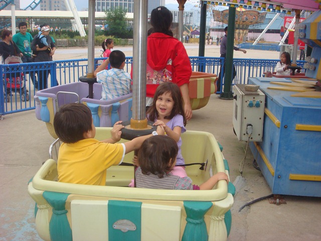 The next day we went to a carnival/amusement part in Qingdao. Amusement park rides in China are kind of like used cars that say “runs great” because the look like crap on the outside. The amount of faith I put in that they are actually operational is a testament to my optimistic nature. In any case, the kids loved it. I would have liked a little less over amplified music and a few more benches, but otherwise it was fun.