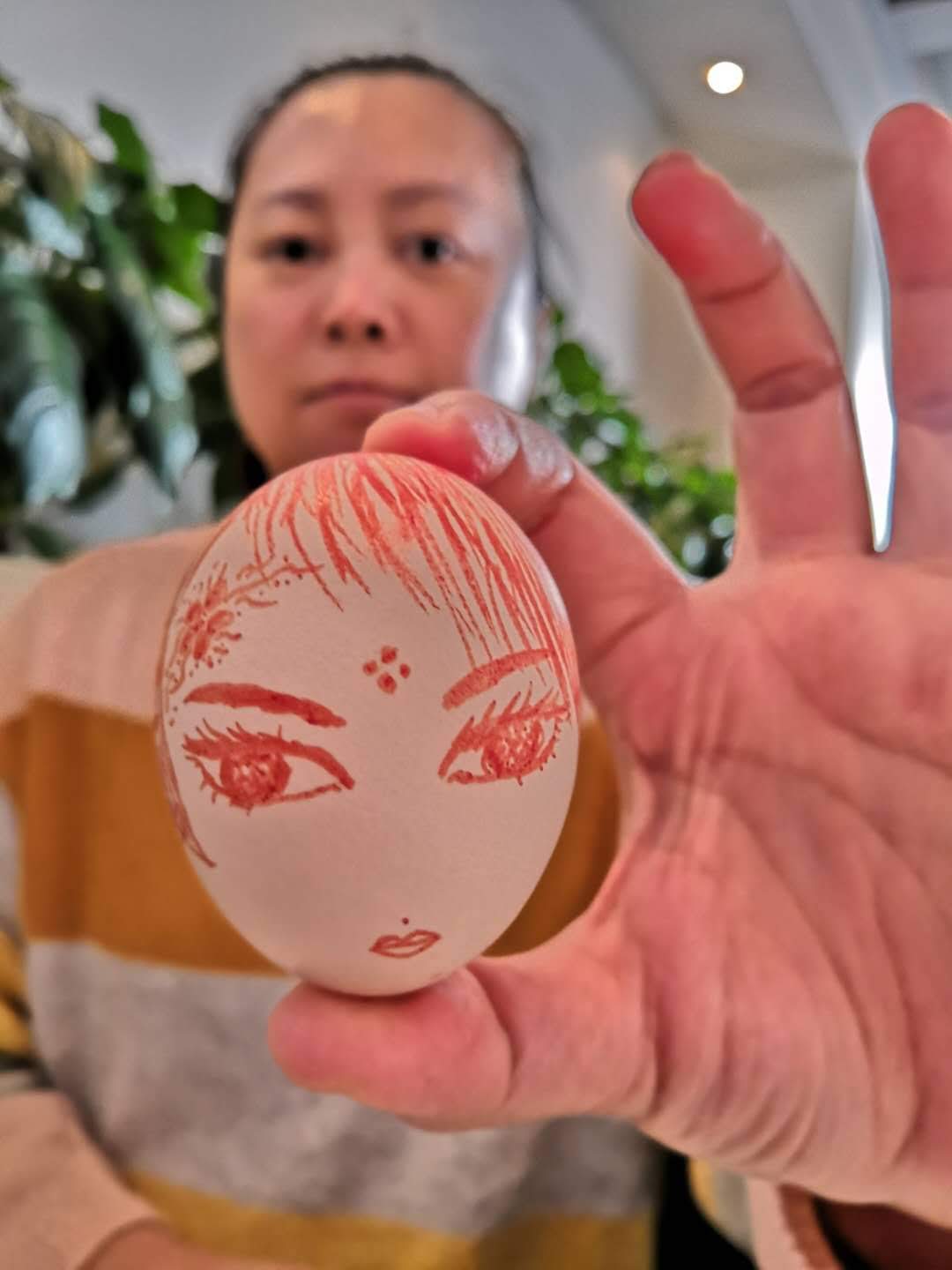 Later we have easter breakfast with the kids, Yang, and Yang’s mom. It is a tradition we’ve maintained along with painting eggs and candy hunting. Yang’s mom is happy, all ghetto taking pictures with her iPad. Aidan, 16, is sleepy from a late night. We talk NBA playoffs. Lydia is taking school notes, dropping in sharp comments, in between drawing on her egg. Elisa is smiling, showing her egg art work and asking about Kobe. Yang and Sabrina chat politely in Chinese. I wonder when the food will come. And when it does I eat it like it was never there.