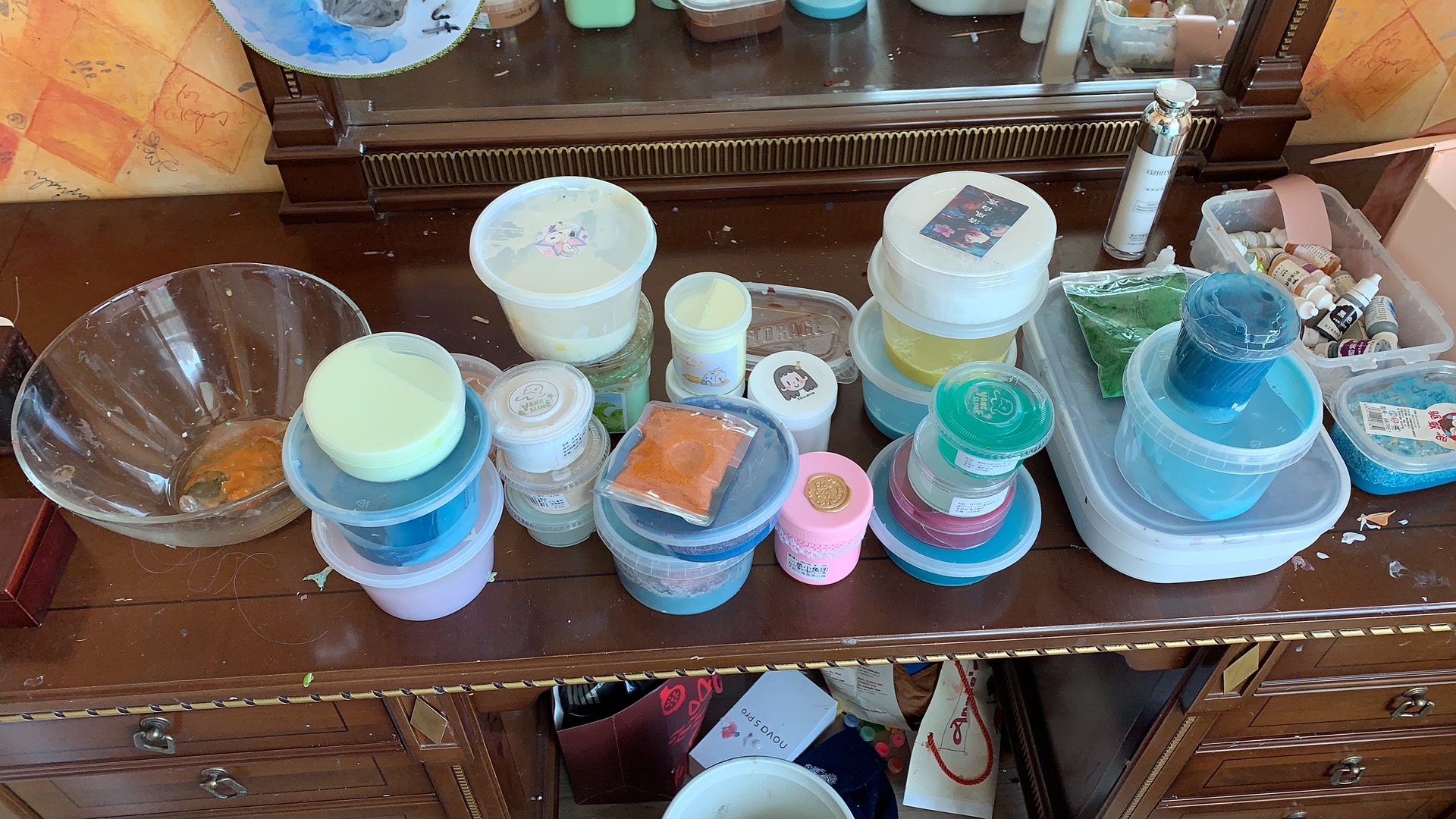 One hopes one’s children develop interests that can challenge them and expand their view of the world. Lydia has sketched since she was small and has developed an artistic eye. Aidan shares my passion for sports and physical activity. Elisa has her slime. At first, when she carved out a corner of her bedroom to work on the slime I thought it was interesting. She did much of the work in private, I think to avoid me asking her not to waste things or create much of a mess. Then I discovered she had two slime processing locations in her mom’s apartment. When we moved last month, we moved a small cabinet of slime materials into our new apartment. And when she took over a bedroom in the apartment, she consolidated her slime operation. It must be a top 10 operation in Beijing.