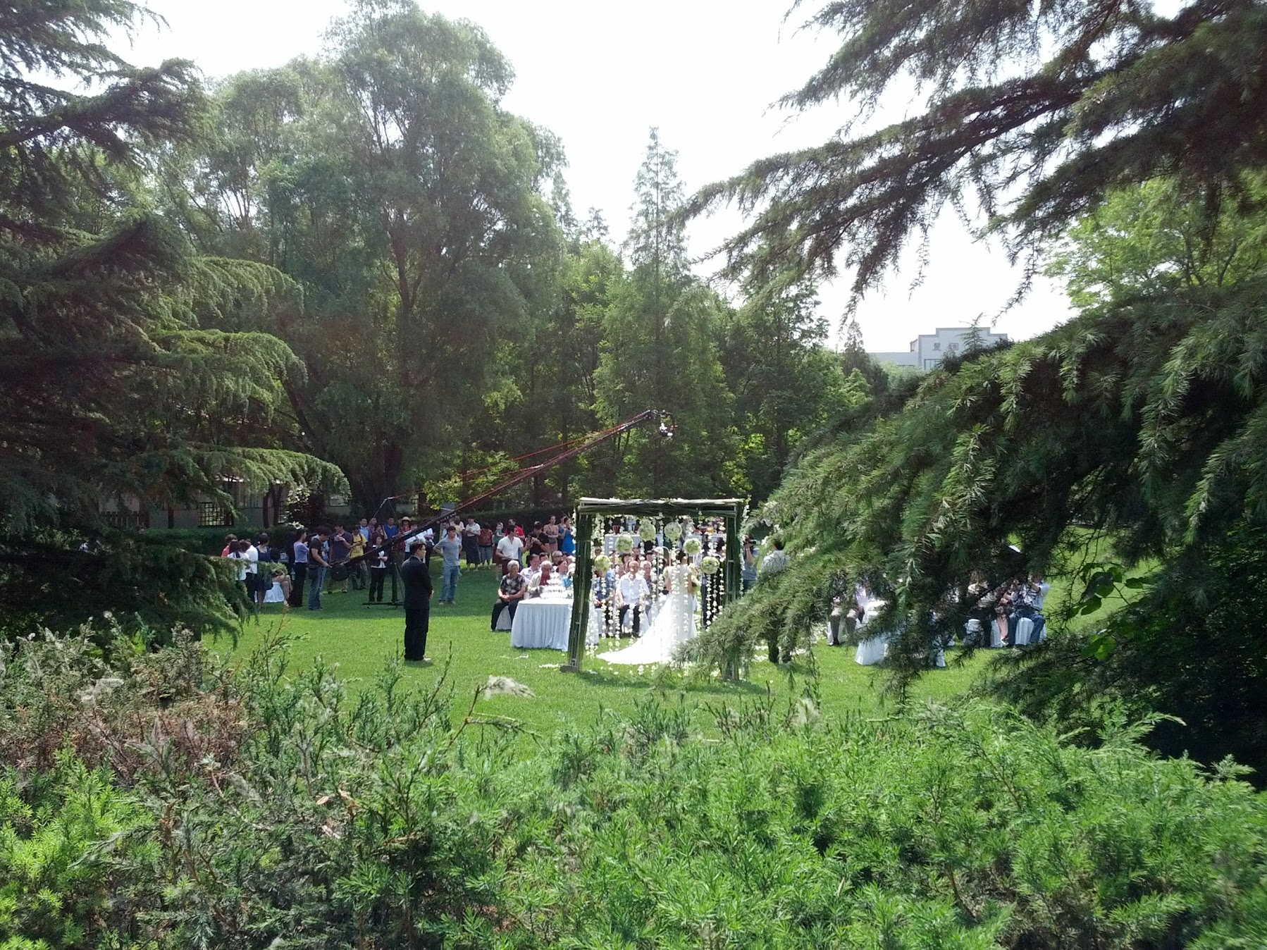 On this day, Elisa was they park guide leading me, her boyfriend, and the ayi to all corners of the park. I would suggest a small dirt trail and she would march up it and explore. She would venture across rocks over polluted water with the vengeance of joy. There was a wedding going on in one of the enclosed meadows (parks are seldom just parks here) and put Elisa on my shoulders so she could see over the hedge and watch the wedding. I noticed several wedding attendees watching Elisa and smiling.